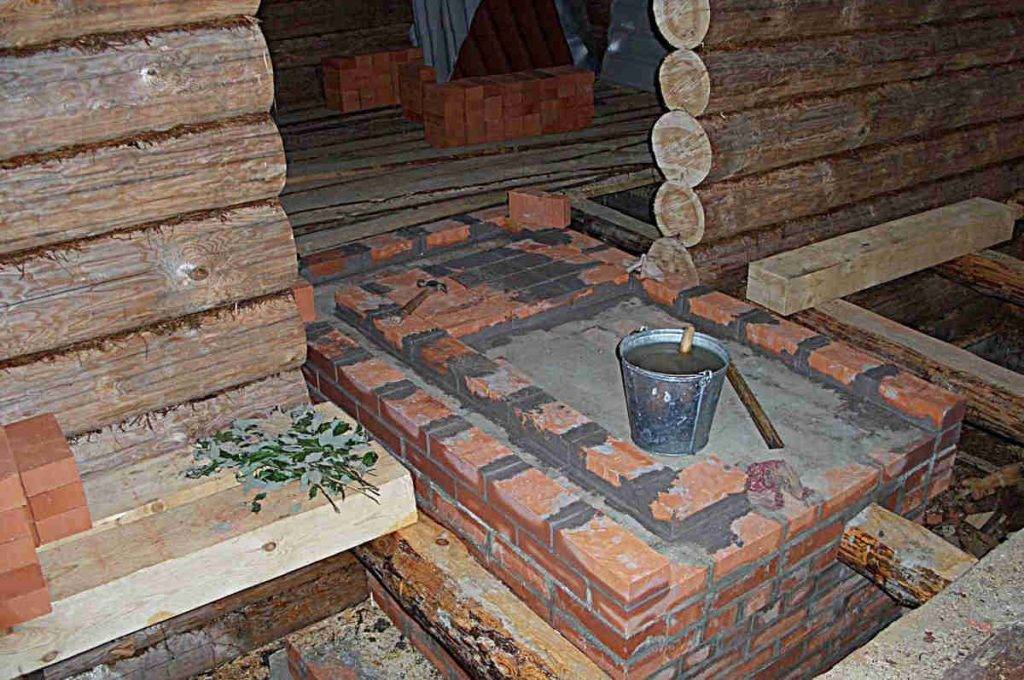 Наряду с этим, многие строители считают, что рассмотренный вариант устарел и не является в достаточной степени безопасным, ввиду чего даже под относительно небольшую печь рекомендуется обустроить отдельное основание, в особенности, если полы в бане сделаны из древесины. К примеру, можно сделать фундамент из кирпича (рекомендации будут приведены в соответствующем разделе). В остальном же решение остается за владельцем