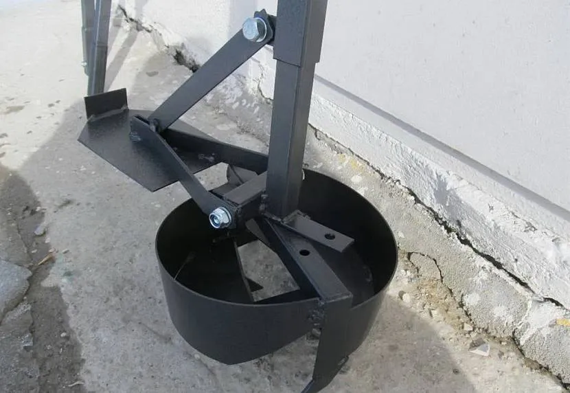 - Надеть плуг. Опустить бур в яму, выдвинуть плуг. При вращении стержня под скважиной будет получаться яма большей ширины.