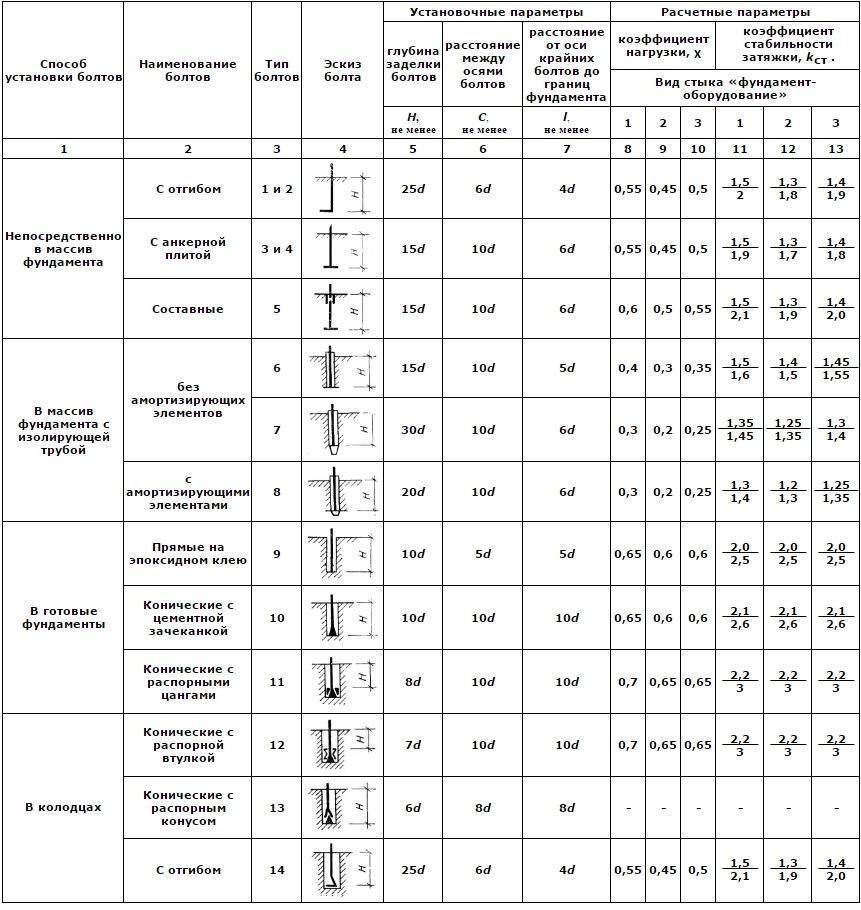 Расчет фундаментных болтов с целью определения их удерживающей способности – еще одна важная процедура, которую необходимо выполнить перед их установкой. Что характерно, в нормативном документе (24379.1-80) нет информации о таком параметре, как величина удерживающей способности фундаментных болтов, поэтому рассчитывать ее надо самостоятельно.