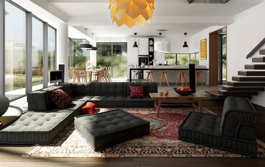 Модульный диван идеально подойдет для большой гостиной в частном доме