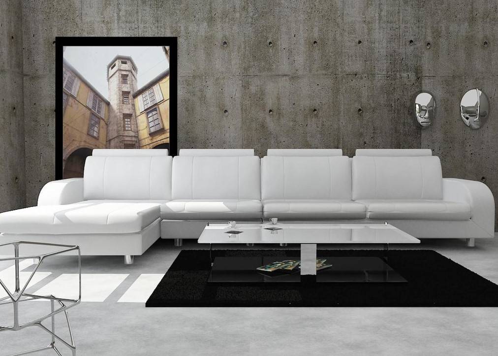 Белый диван с металлическими ножками можно использовать в интерьере лофт и хай-тек
