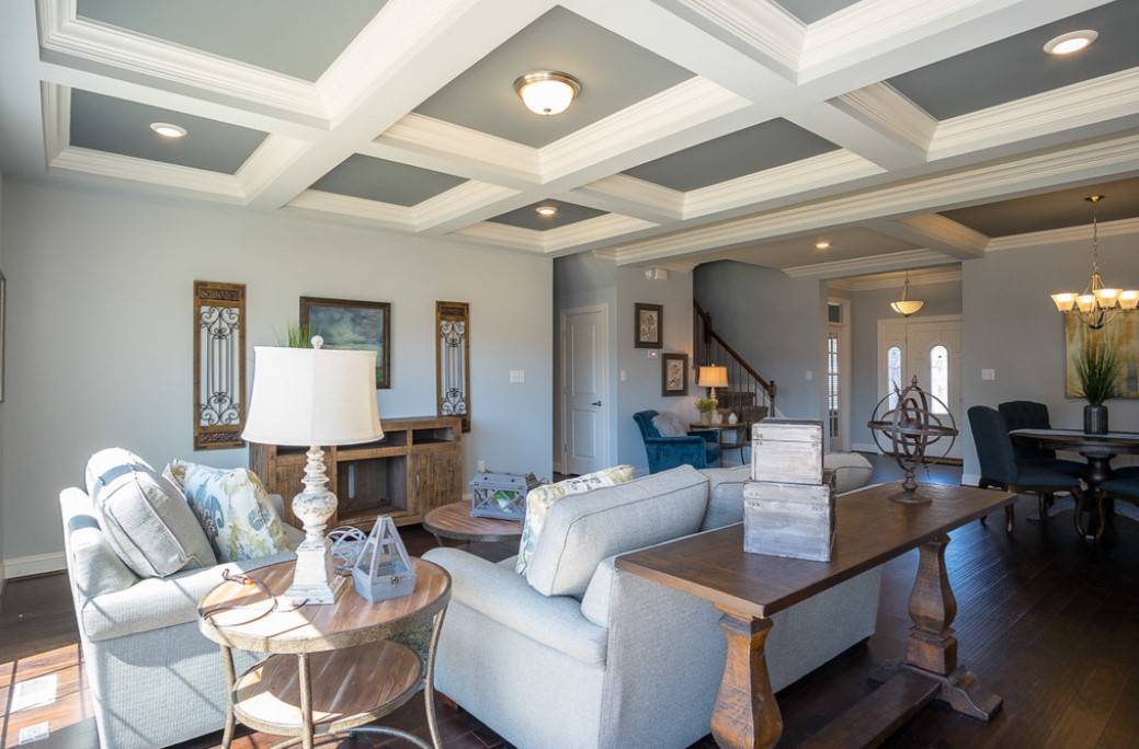 Возле диванов можно разместить несколько столиков для декора и лампы