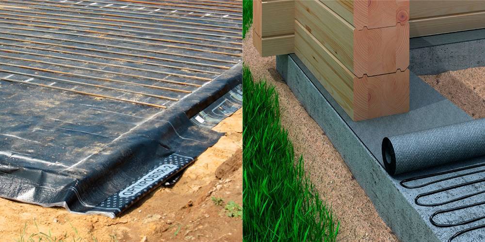 Рулонные материалы применяют для укладки между стенами и лентой фундамента, а также для нанесения на стены.