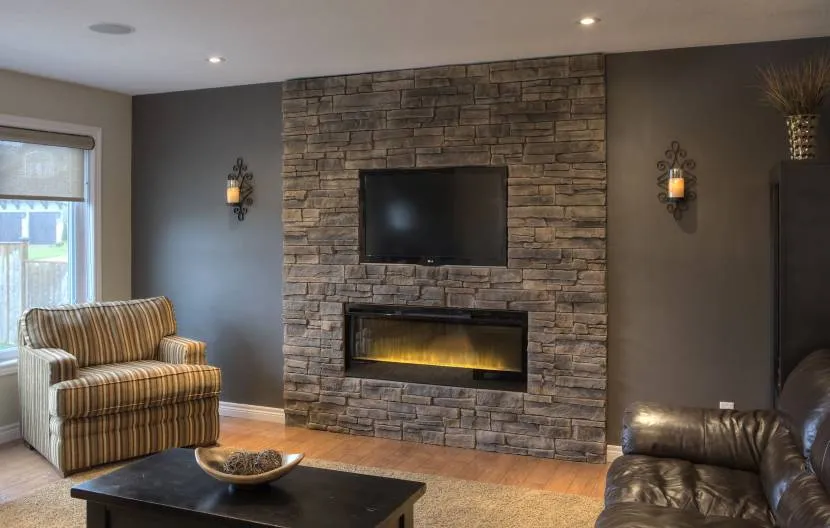 Стена с каменистой кладкой превосходно смотрится в интерьере, пока новая, с годами отделка покрывается пылью и жирной взвесью. Если выбирать подходящее покрытие, то на гипсовых плитах загрязнения менее заметны. Старое покрытие легко обновить, удалить или перекрасить.