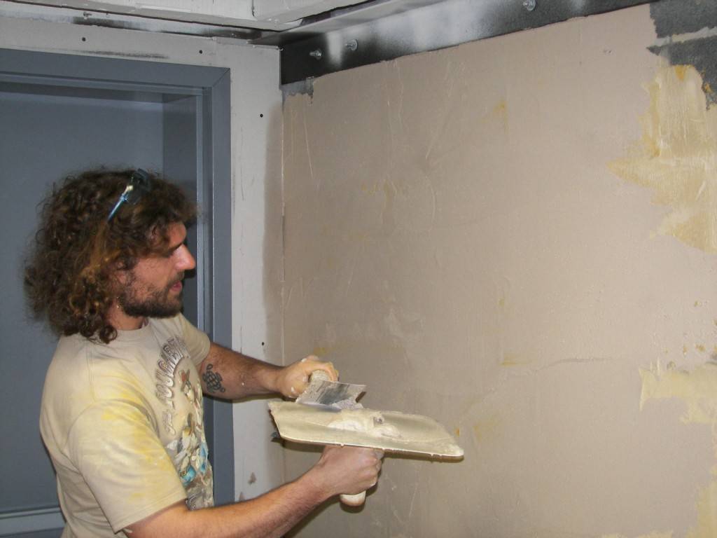 После высыхания штукатурного слоя наносят шпатлёвку или штукатурные смеси на основе гипса. Гипсовые смеси можно размыть посредством мокрой ветоши.