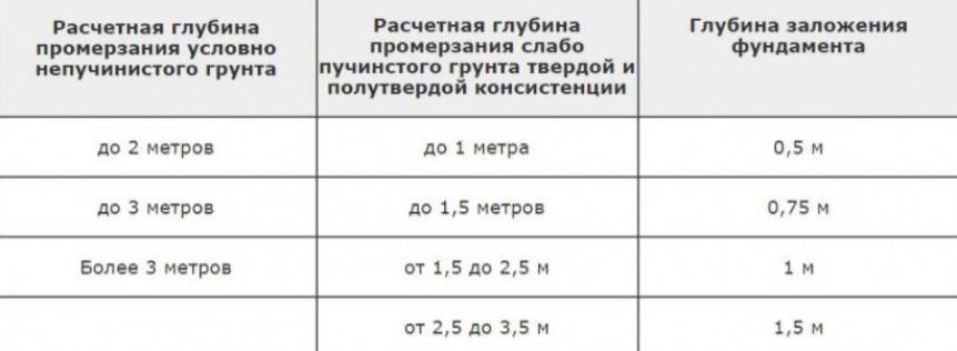 При промерзании грунта на 1,5 м заглубление составит 0,75 м для слоя средней подвижности. На прочных почвах возможно промерзание вдвое большее – до 3 метров. Если фундамент утепляется, есть возможность слегка отклониться от принятых нормативов.