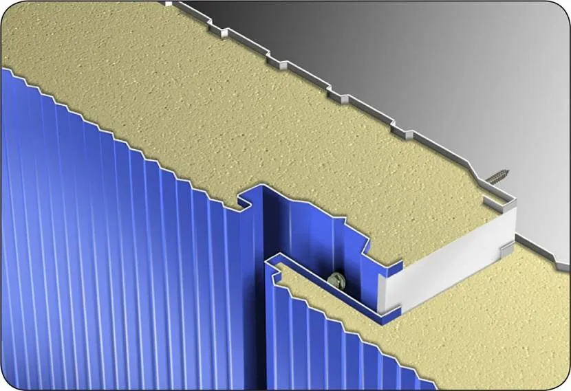 Конструкция сэндвич-панелей предусматривает замковую часть по краям. Она позволяет надёжно соединять соседние элементы в одной плоскости. Такое соединение обладает хорошими термоизоляционными свойствами, поэтому стены гаража не понадобится дополнительного утеплять.