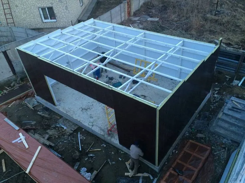 Рассмотрим особенности построения гаража с использованием технологии сэндвича. Укажем основные нюансы, которые необходимо соблюдать на разных этапах строительства.