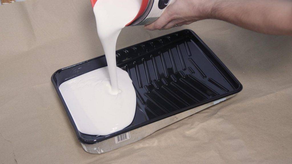 - Налейте часть состава в отсек поддона на кюветке для валика.