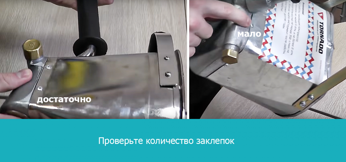 - Проверьте количество заклепок. Если их мало, ковш быстро продырявится.