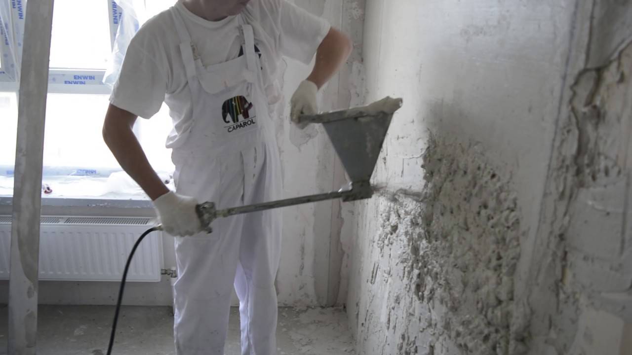 В емкость накладывают раствор, подключают прибор и начинают наносить смесь. Необходимо работать, пока вся порция состава не закончится. Может случиться, что одна рука сильно устанет от движений, тогда нужно немного отдохнуть или начать действовать второй рукой.