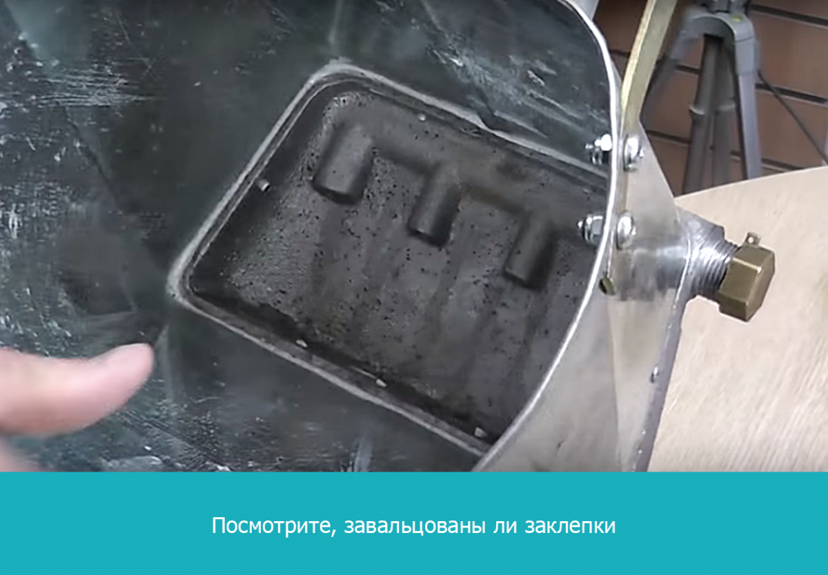 - Посмотрите, завальцованы ли заклепки, чтобы обеспечить герметичность.