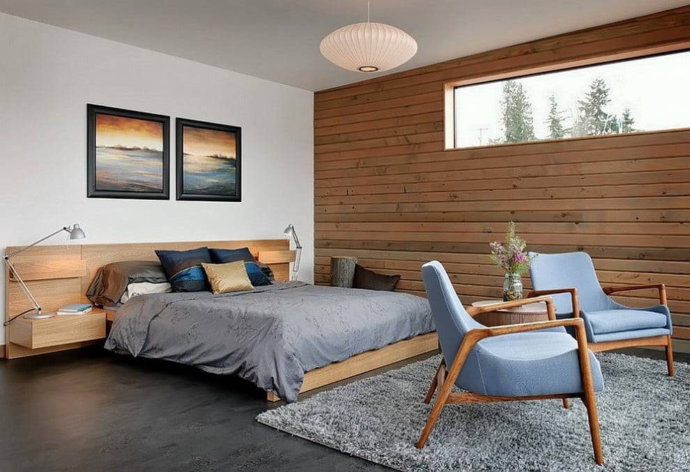 Ламинат на стене поможет сделать интерьер спальни более стильным и уютным