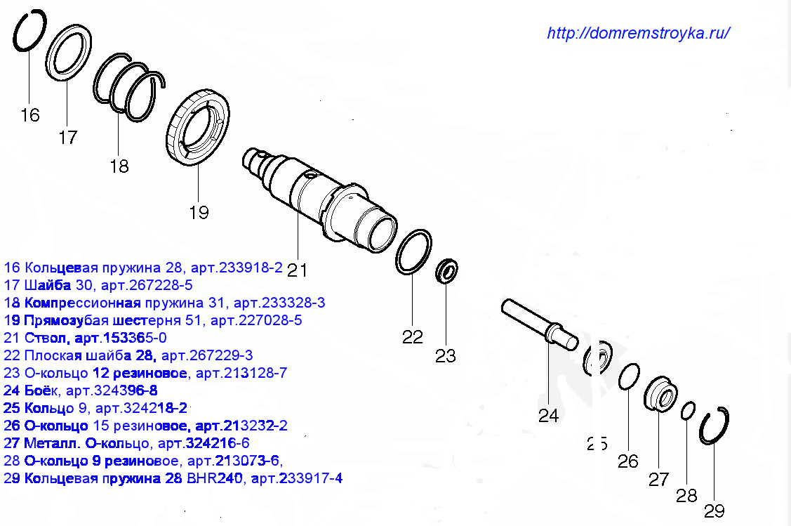Механический узел предназначен для передачи вращательного момента вала к инструменту, создавая не только крутящий момент и поступательный ударный импульс.