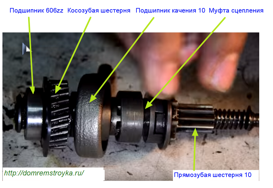 Освободив механический блок, необходимо отсоединить от него ротор. Ротор поз. крепится в механическом блоке за счет трения зубьев шестеренок и вытаскивается путем пошатывания и разъединения одновременно.