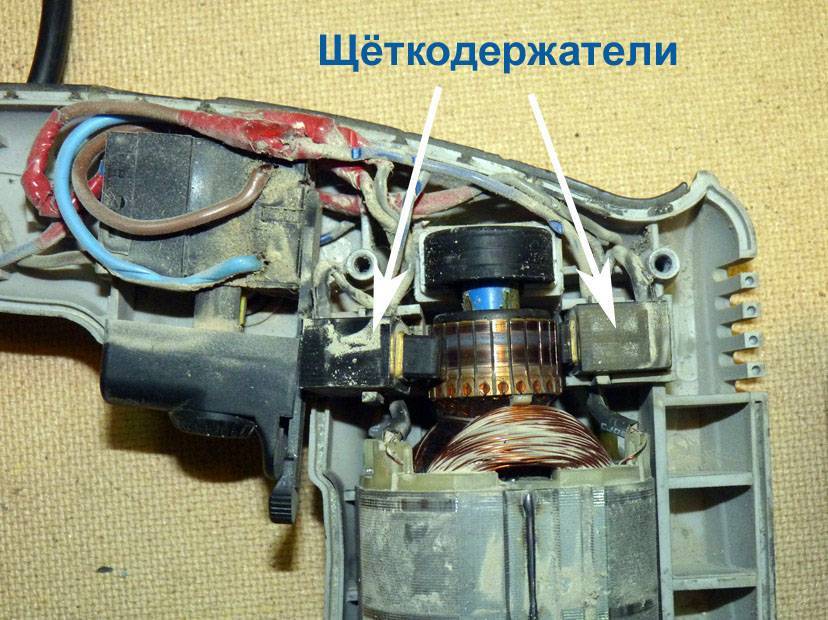 При всем этом необходимо осознавать, что неувязка вам понравятся не столько в кнопке выключателя. Следует также проверить электронный кабель на предмет наличия изломов, степень износа угольных щеток и контактов переключения реверса.