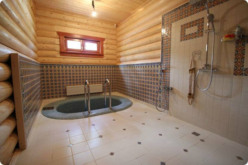 Керамическая плитка в ванной бревенчатого домаИсточник uk.aviarydecor.com