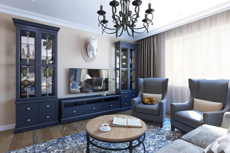 Очевидно, что формирует интерьер все-таки не столько отделка, сколько меблировка. Все предметы создают необходимую атмосферу, подчеркивают характер стиля, настроение обстановки. Они либо служат акцентами, либо выступают основными фоновыми аксессуарами. Мебель для гостиной в стиле современная классика должна в большей степени подчеркивать дизайн – сдержанный, элегантный, изысканный. Как правило, это стройная, но простая мебель, ведь это уже не та торжественная и довольно напыщенная классика.