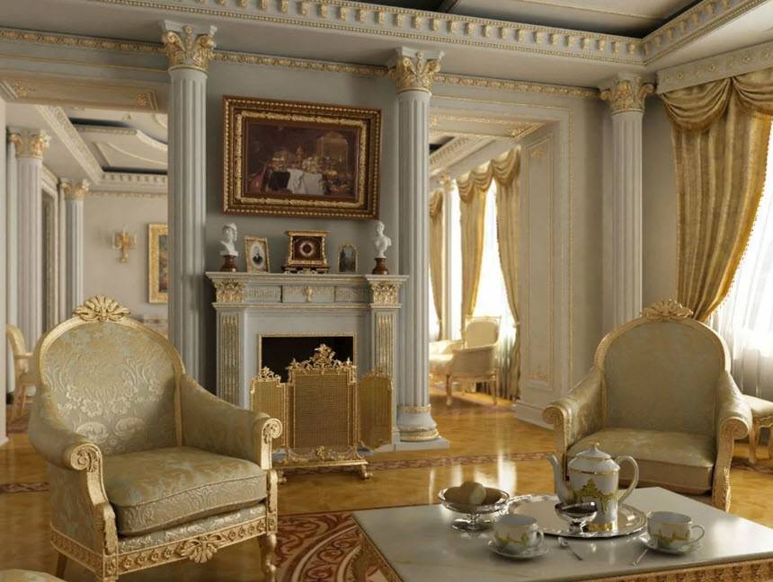 Шикарная гостиная комната в классическом стилеИсточник katchoi.wixsite.com/