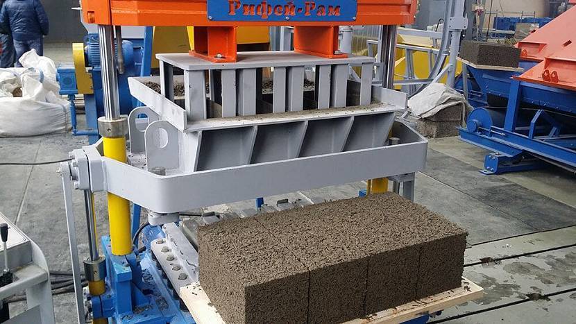 - Формовки. Необходимое, точно выверенное количество щепы и цемента смешиваются и формируются в блоки.