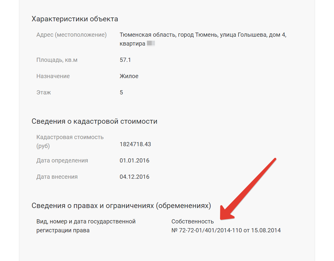 Получить данные о владельце через Росреестр можно только в том случае, если на участок земли зарегистрировано имущественное право. Сведения о собственнике будет располагаться на первой странице в разделе № 2. Если собственник один, то в одной строке будет прописаны полностью ФИО, строчкой ниже – дата регистрации вещного права, а также реквизиты регистрационного дела.