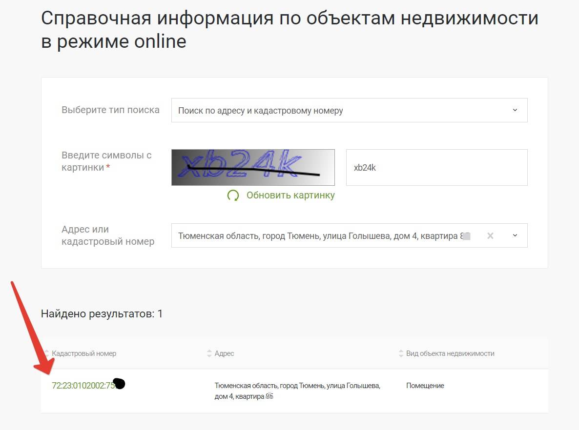 Если у вас нет данных о кадастровом номере, а есть условный в типе поиска выберите » Поиск по ранее присвоенному номеру».Условный номер всегда содержит разделители типа: 72:23:20:32:000:03326/А:0/0027