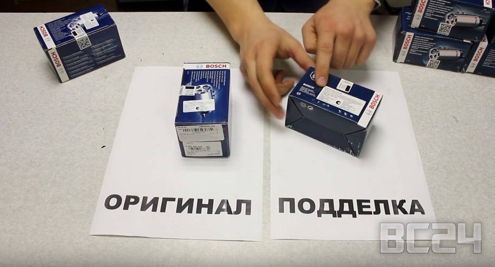 Когда в первый раз возьмешь коробки с бензонасосом БОШ в руки, сразу очень трудно сказать — где оригинал, а где подделка? Цветовая гамма, все наклейки и картинки идентичны у подделки с оригиналом.