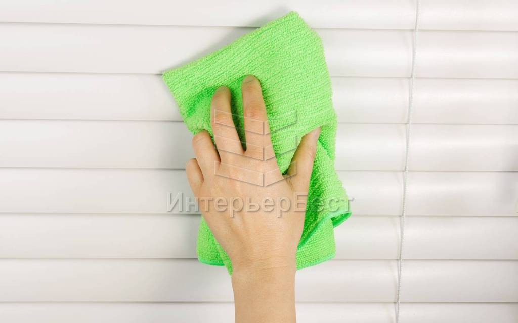 Для сухой чистки можно использовать тряпку из микрофибры или специальную щетку. Подойдет и сухая ветошь. Щетки-щипцы для чистки жалюзи можно найти в крупных супермаркетах. Для начала потребуется отвернуть от себя жалюзи до полного их закрытия. Затем каждая планка протирается вдоль при помощи тряпки. Следите, чтобы тряпка полностью закрывала пальцы.