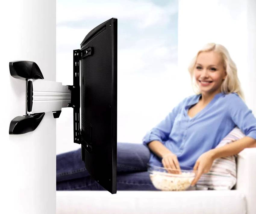 Для крепления телевизора следует использовать шарнирные кронштейны. Перед их приобретением рекомендуется определиться с местом монтажа, чтобы купить более подходящую конфигурацию. Кроме того, выбирая кронштейн, не забудьте учесть размеры телевизора и его массу. В противном случае ваше крепление может довольно скоро оказаться на полу.