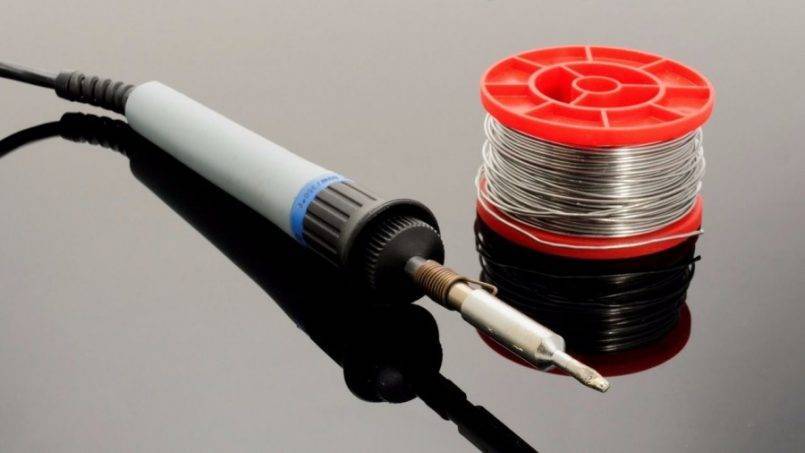 Это специальное излучающее тепло приспособление мощностью от 15 до 40 Вт, достаточной для припаивания проводов, плат и микросхем. Существуют паяльники, мощность которых выше. Они предназначаются для небольшой пайки – для перепаивания неудачно соединенных проводов толстого диаметра или для распаивания разъемов XLR. Функцию нагревательного элемента в паяльниках выполняет нихромовый провод, который намотан на трубку, содержащую «жало» — рабочую поверхность устройства. Жало представляет собой медный стержень, который нагревается от нихромового провода.
