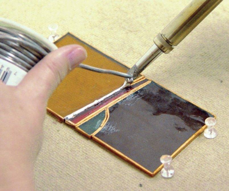Обработанный жидкой или желеобразной канифолью проводник прогревают разогретым наконечником паяльника с капелькой припоя, разгоняя его по всей контактной площадке.
