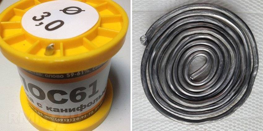 С припоями всё несколько проще. В основном для пайки используются свинцово-оловянные припои марки ПОС. Цифра после маркировки означает содержание олова в припое. Чем его больше, тем выше механическая прочность и электропроводность соединения и при этом ниже температура плавления припоя. Свинец используется для нормализации процесса застывания, без него олово может растрескаться или покрыться иглами.