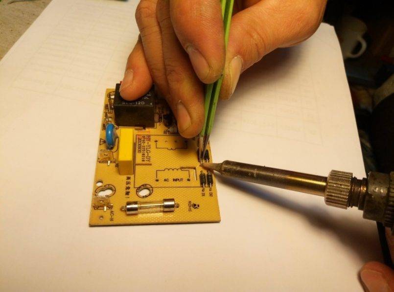 - Паяльник включить в сеть и разогреть до рабочей температуры.