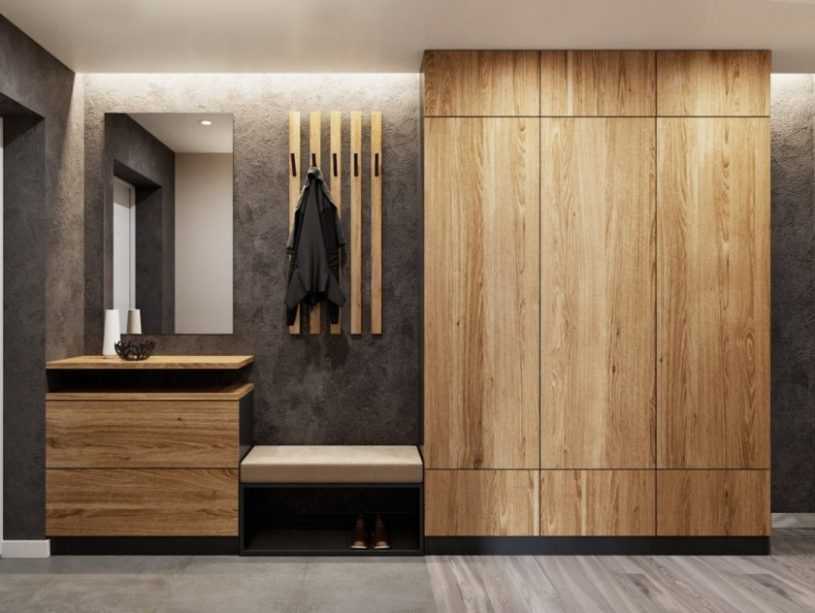 Удобные полочки, тумбочки и вешала позволяют комфортно раздеваться и одеваться не мешая друг другу. Здесь есть куда убрать головные уборы и обувь, а большие зеркала помогут оглядеть себя полностью. Каждый домовладелец может подобрать модель шкафа, которая идеально впишется в помещение. Наиболее распространённая гардеробная мебель: корпусная, угловая и встроенная. Для сложного интерьера можно сделать заказать комплекса в персональном порядке.