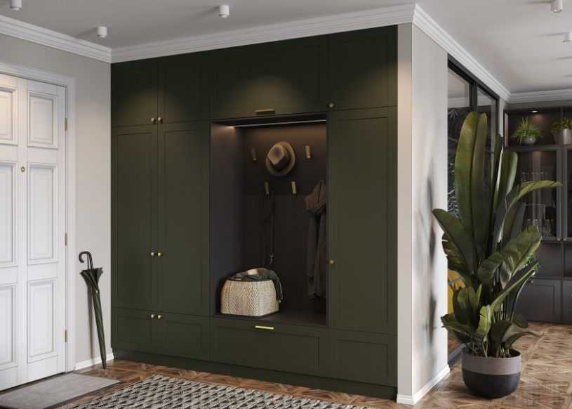 Если у тебя в прихожей нетипичная планировка или уже есть ненужная ниша, используй встроенную мебель. Стенки или отдельные части тоже заменяют стены, за счет чего шкаф превращается в мини-гардеробную
