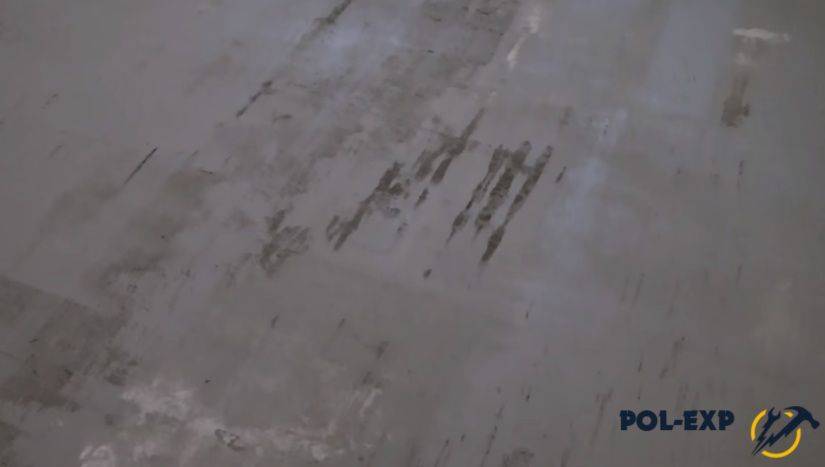 Шаг 1. Срубите большие бугры, уберите поверхность от строительной пыли и мусора. Если бетон очень сухой, то рекомендуется его обильно смочить водой. Вода не должна моментально вытягиваться из клея, она нужна для оптимального протекания химических реакций. Отсутствие требуемого количества жидкости критически понижает прочность выравнивающего слоя клея.