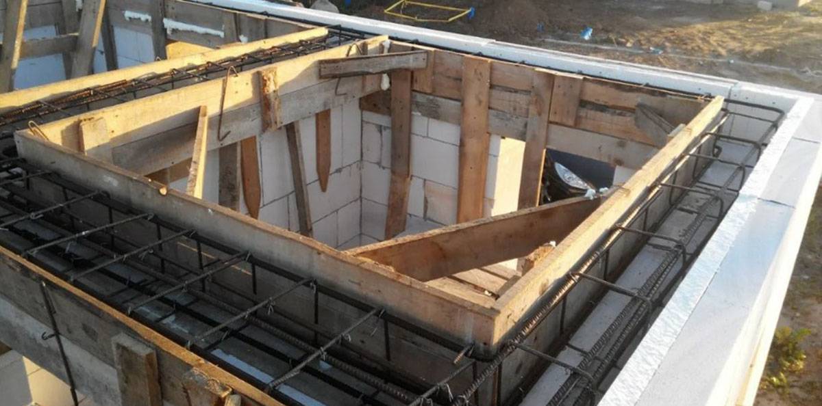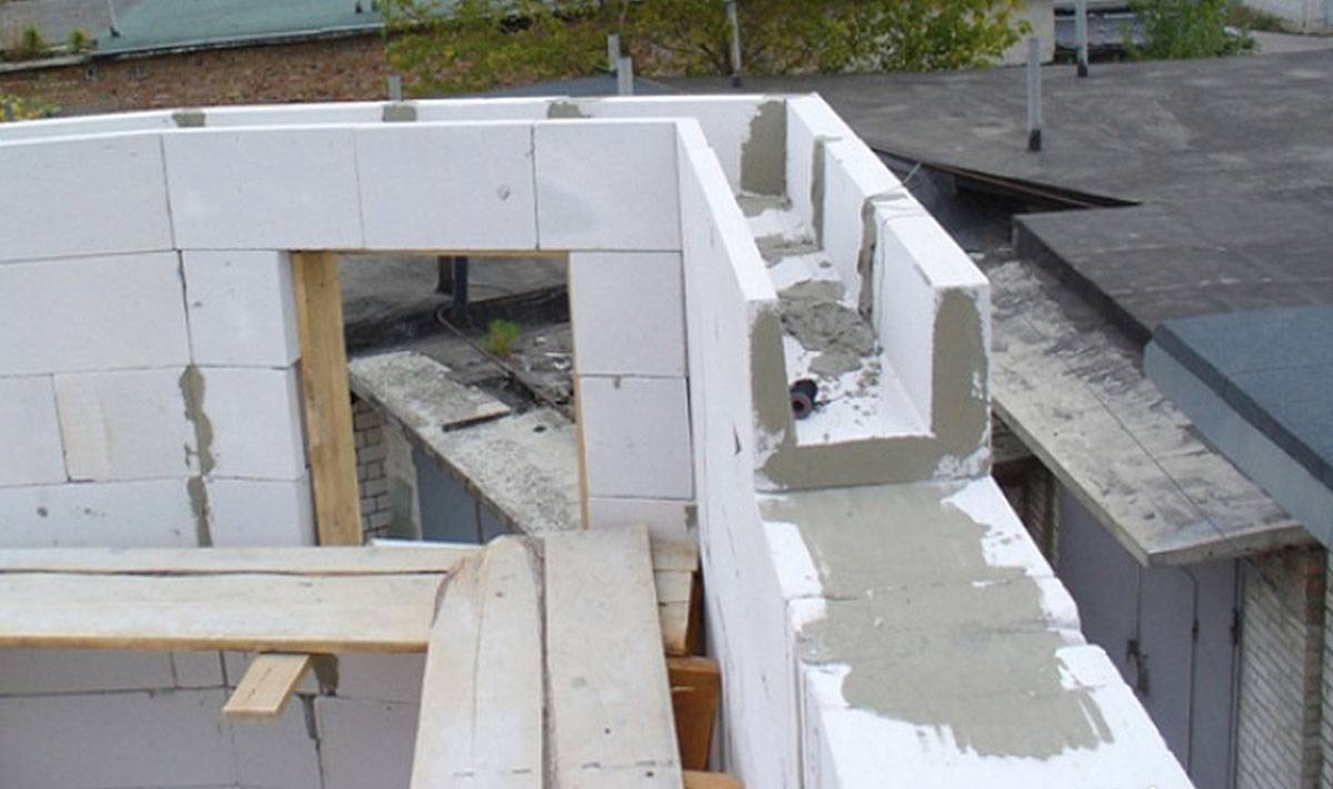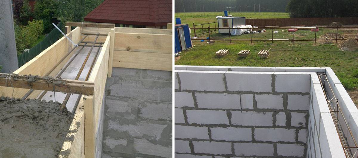 Выбирая газобетон для возведения стен нужно понимать, что коробка дома из него не справится с возложенной на нее тяжестью кровли. Возведение армированного пояса поможет ей справиться с этой проблемой.
