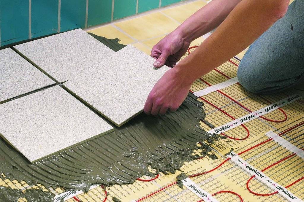 - После того, как кабель проложен, можно заниматься укладкой кафельной плитки.
