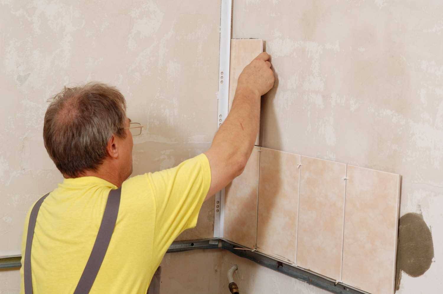 Керамическая плитка более сложна в монтаже. Она наносится на специальный клей. Обязательно должен использоваться строительный уровень и пластиковые крестики, которые фиксируют плитку на одинаковом расстоянии. После того как клей засохнет швы необходимо обработать силиконовым составом.