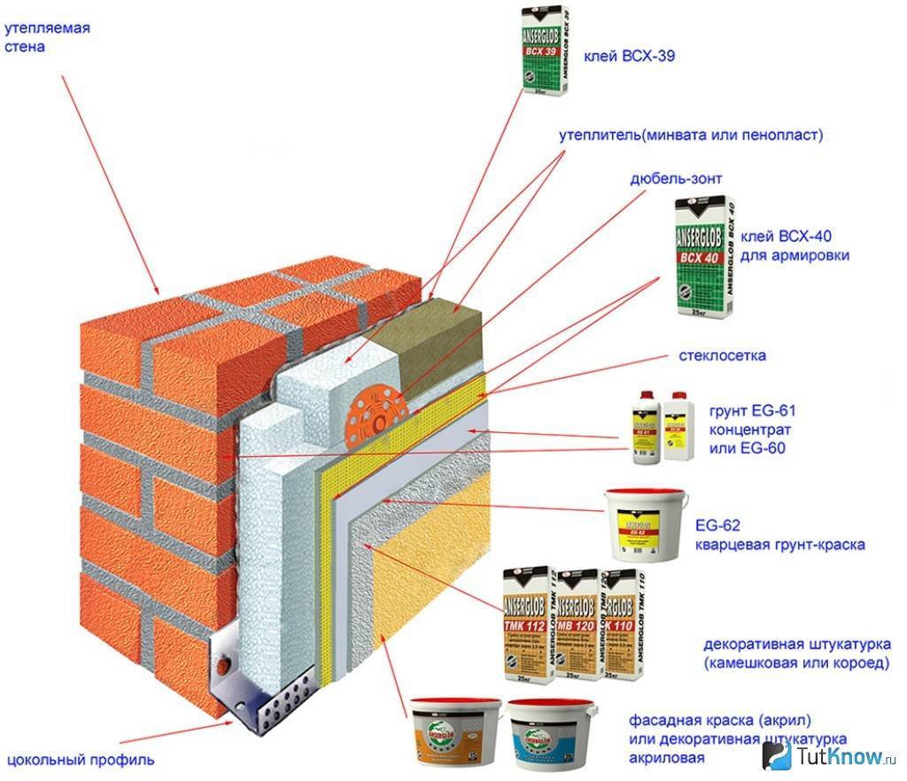 Обратите внимание, что для монтажа плит пенопласта можно использовать полиуретановый или другой клей, в состав которого не входят толуол, ацетон и бензин