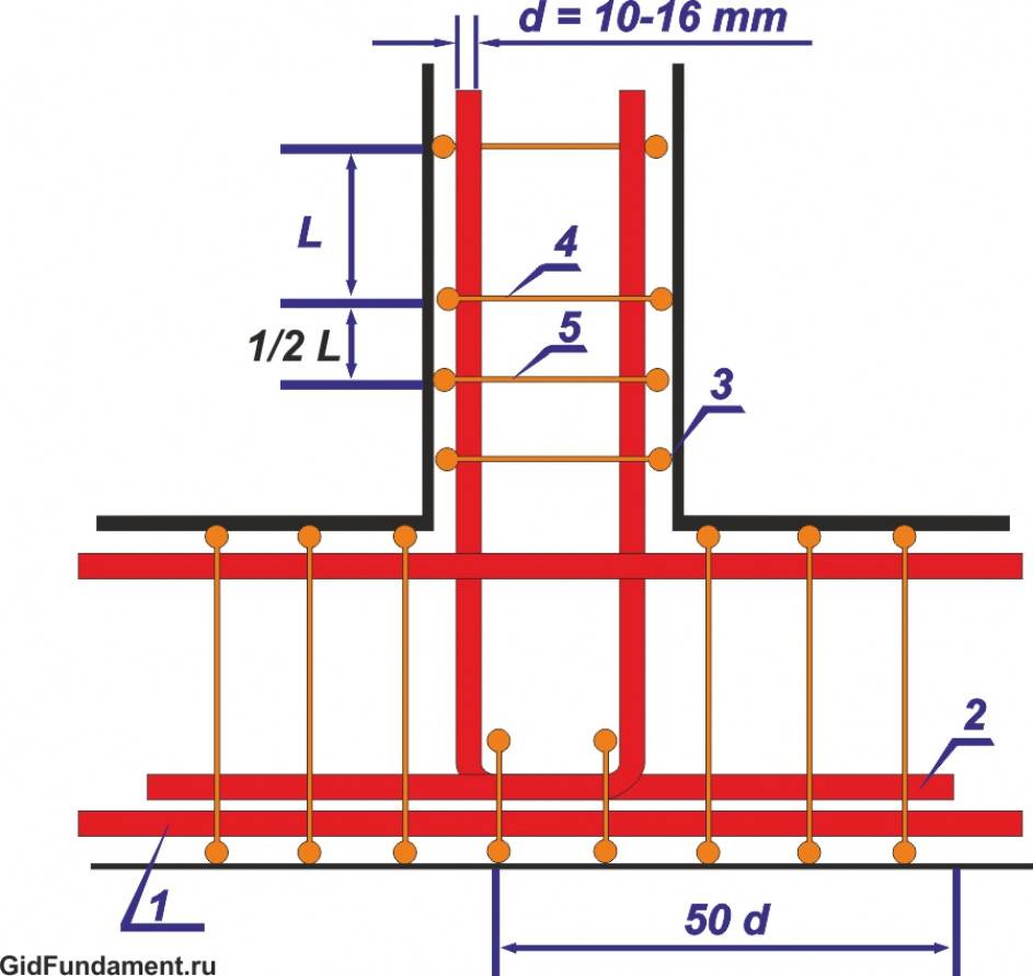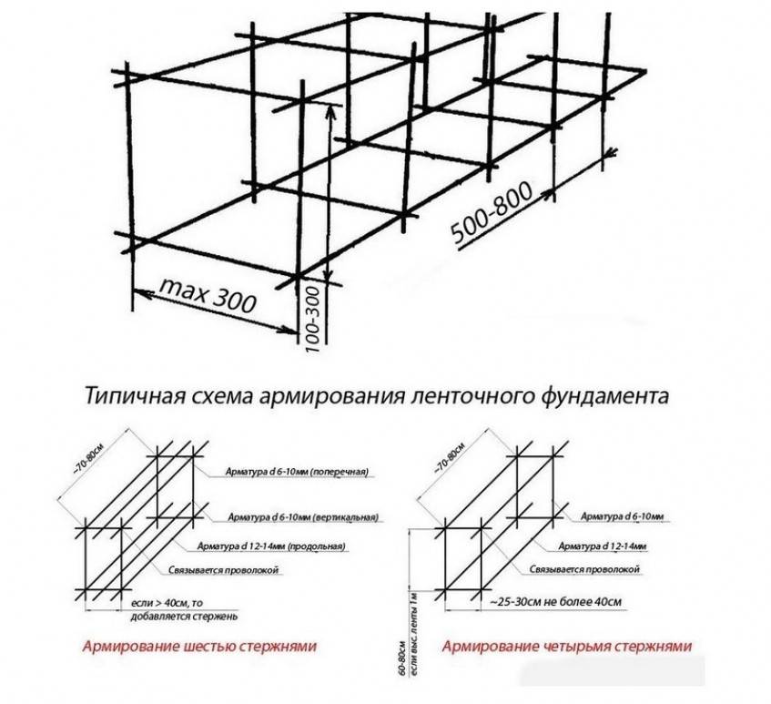 Схема армирования ленточного фундамента