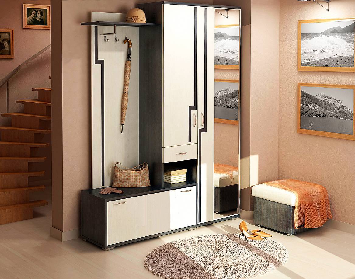 Используйте минимум необходимой мебели. Можно вполне ограничиться невысоким шкафчиком для обуви с полкой для перчаток, головных уборов и прочих небольших предметов гардероба, а также миниатюрными настенными крючками для верхней одежды. Разместив в прихожей зеркало, вы визуально свяжете ее с остальным домом.