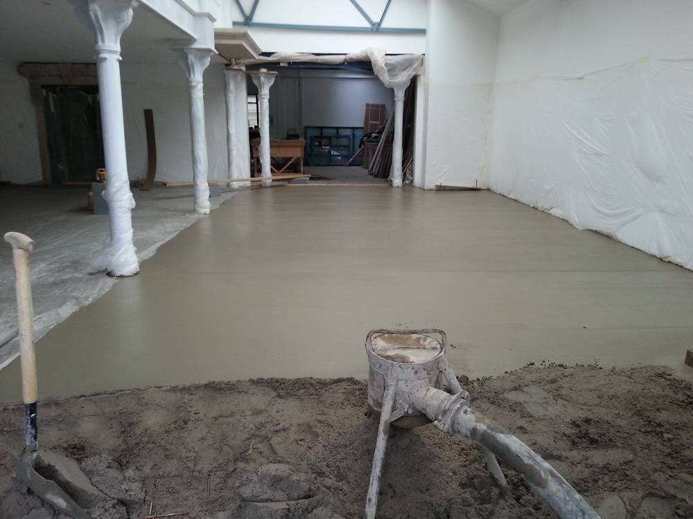 - Монтаж бетонных полов. Перед проведением работ с бетоном, нужно объективно оценить весь объем работ. Дело в том, что бетон следует лить одним коржом, заливка полов в 2-3 этапа с большим интервалом в несколько часов и более, является грубым нарушением технологического процесса. Поэтому часто возникают ситуации, когда есть смысл заказать готовый бетон в автобетономешалке. Если объект находится на высоте или в труднодоступном для автобетономешалки месте, существует автобетононасос.