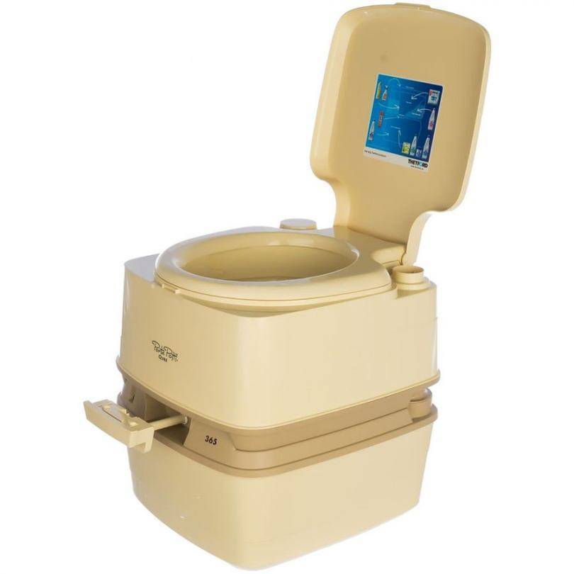 Thetford Porta Potti 365. Очень популярная модель благодаря своей компактной, легкой (всего 4 кг) и практичной конструкции. Туалет оснащен поршневой помпой для смыва воды и индикатором заполненности нижнего резервуара.