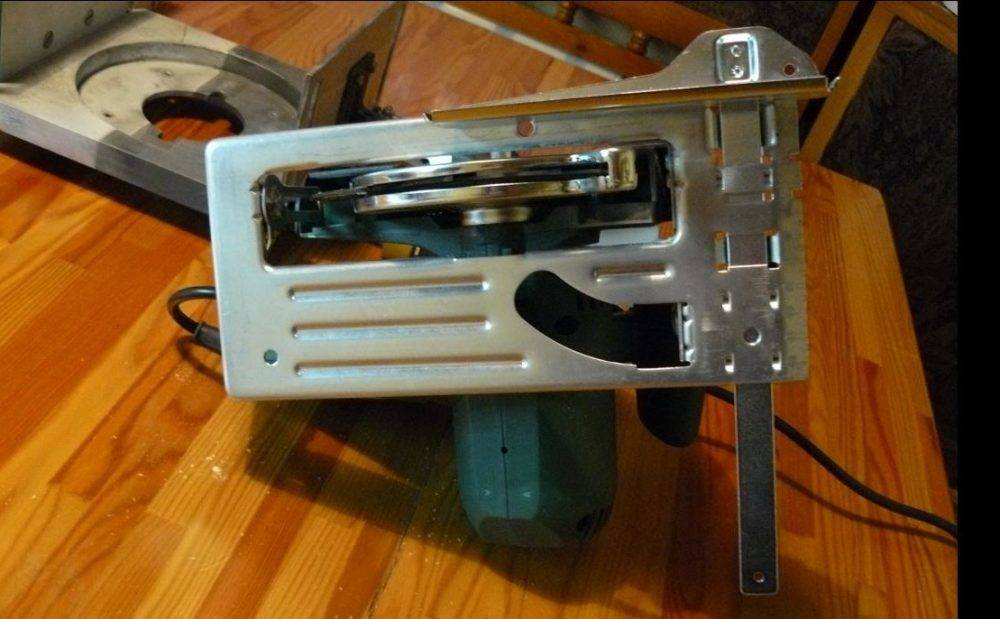 Ручные модели могут быть переделаны в настольные. В них корпус крепят под столешницей так, что над столом оказывается только диск для пиления. Этим стационарным инструментом работать намного легче и быстрее. Электродвигатель закреплен под распиловочным столом.
