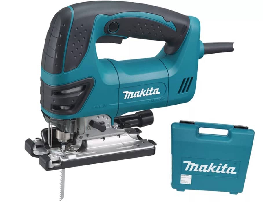 Первая рассматриваемая модель лобзика обладает минимальной вибрацией. Другими словами, он почти бесшумен. Среди других преимуществ Макиты выделяют возможность регулировать базовую плоскость, три режима маятникового хода и прорезиновая ручка. Недостатком электролобзика можно считать длительную замену полотна.