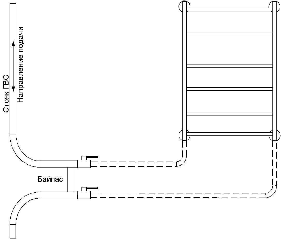 Перемычка между входом и выходом полотенцесушителя и есть байпас