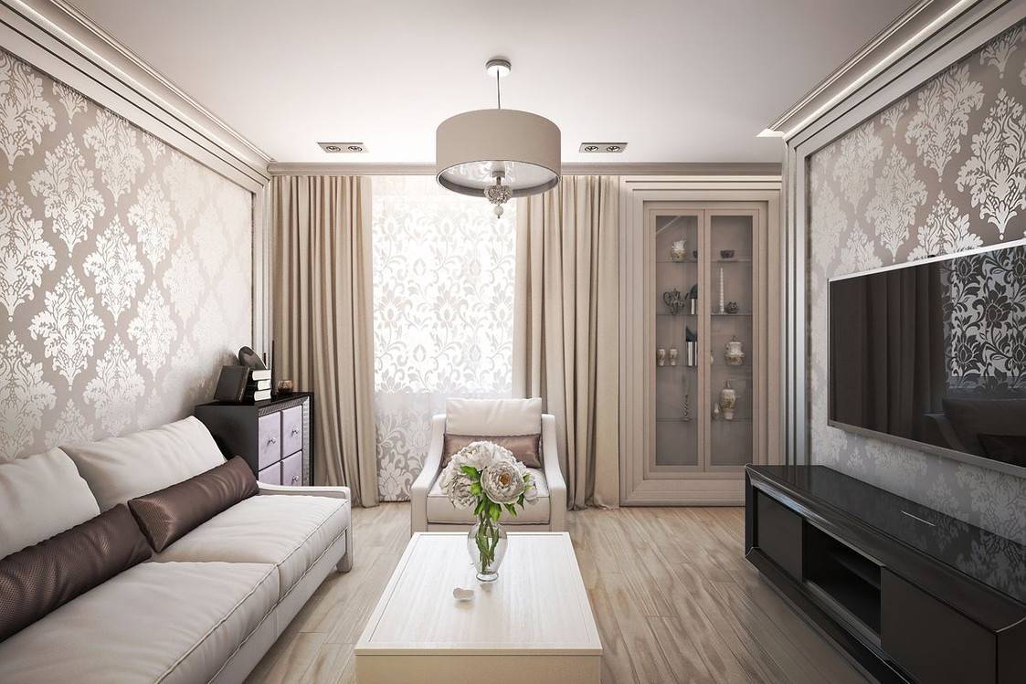 Чтобы маленький зал казался больше, стоит подумать над тем какие обои выбрать для комнаты с учетом рисунков и узоров. И здесь сразу стоит запомнить, что обои с контрастными и крупными рисунками не подходят. Большие узоры и их яркость только подчеркнут маленькое пространство комнаты. А вот однотонные полотна с цветочным мелким рисунком сделают комнату просторной, уютной и светлой.