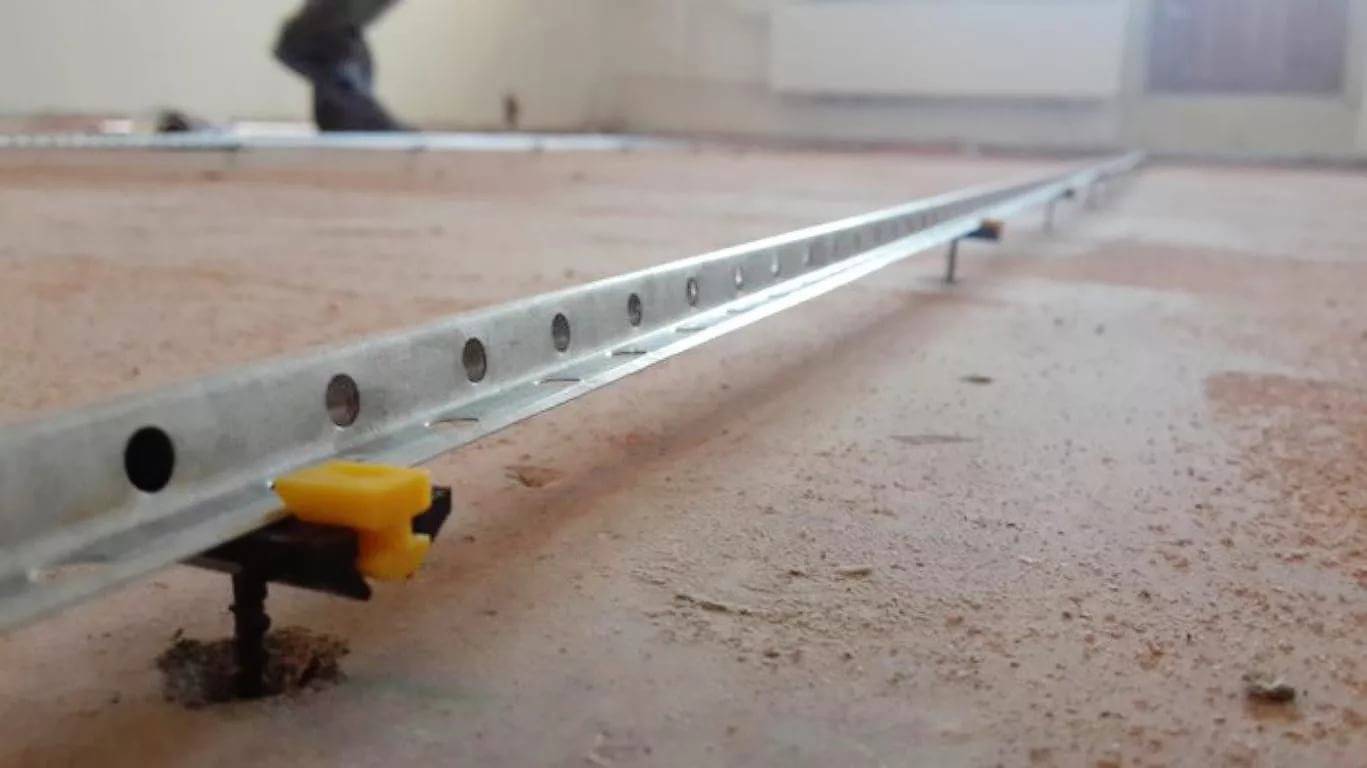 Первым делом требуется убрать из помещения все лишнее, устранить пыль, строительный мусор и остатки ранее залитой стяжки. После чего следует отыскать наиболее высокую точку и расположить на ней лазерный уровень, который позволит произвести разметку высоты по всей протяженности комнаты и осуществить установку направляющих в необходимых местах.