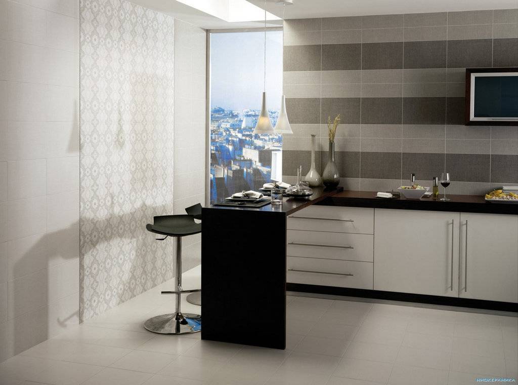 В свою очередь черная глянцевая плитка придает помещению респектабельность и изысканность, однако не стоит использовать ее в маленьком и тесном помещении. Кухня с черной плиткой будет выглядеть более торжественно, особенно если дополнить картинку белой мебелью.
